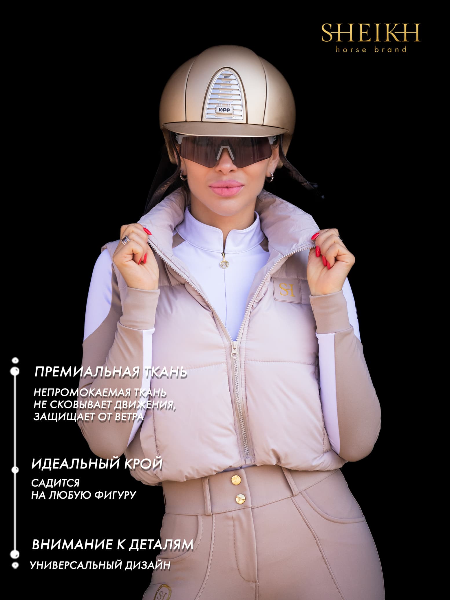 Жилетка для верховой езды, конного спорта Стильная укороченная жилетка идеально подойдет как для тренировок, так и для повседневной носки. Она совсем не сковывает движения и позволяет всаднику чувствовать себя верхом свободно и комфортно. Незаменимая вещь этой весной! Жилетки выполнены из высококачественных материалов, которые отлично защищают от порывов ветра. Это особенно важно во время верховой езды и занятий в открытом манеже. Эти укороченные жилетки идеально подходят как для тренировок верхом, так и для повседневной носки. Их можно сочетать с любой одеждой, создавая стильные образы. Конструкция жилетки обеспечивает свободу движений и не сковывает всадника.