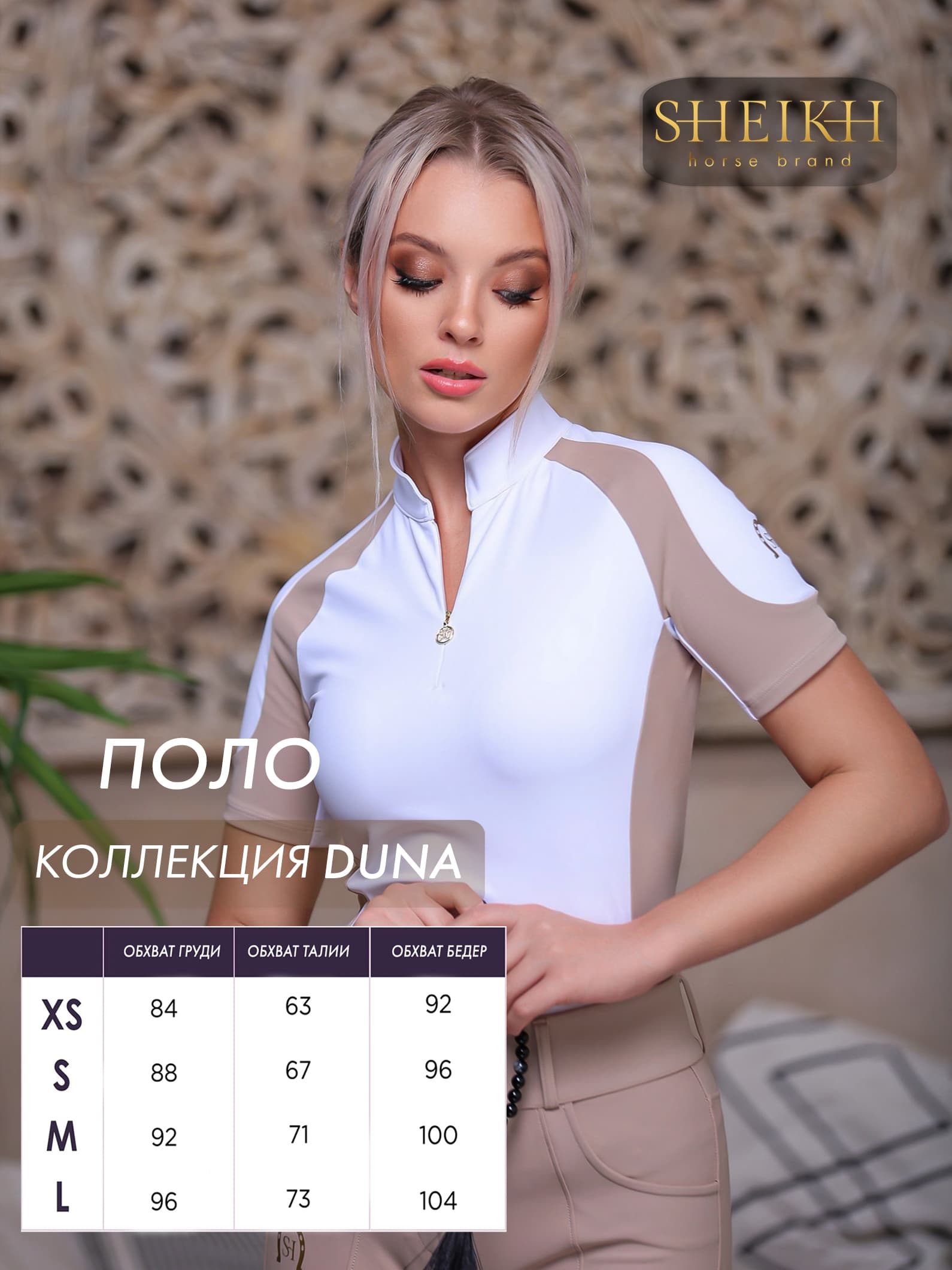 Поло для верховой езды, конного спорта Поло DUNE создано для того, что бы вы получили удовольствие от верховой езды в теплую погоду. Мягкая, спортивная ткань быстро выводит влагу и приятна к телу. Весь дизайн стремиться подчеркнуть ваш силуэт и элегантность линий. Рукав реглан обнимает ваши плечи. Скрытая молния дает свободу действий и выбора. Фирменная фурнитура с логотипом удобно ложился в руку. Каждая деталь подчеркивает вашу индивидуальность, особенность и трепетное отношение к себе. Вам обеспечен великолепный силуэт в седле с поло от бренда SHEIKH . Детали: Изготовлено из спортивной ткани. Состав: 20% спандекс 80% полиэстер. Потайная молния. Фурнитура: латунь Брендирование на плече и спине. Уход: Машинная стирка на деликатном режиме, при температуре не более 30С Сушка на открытом пространстве
