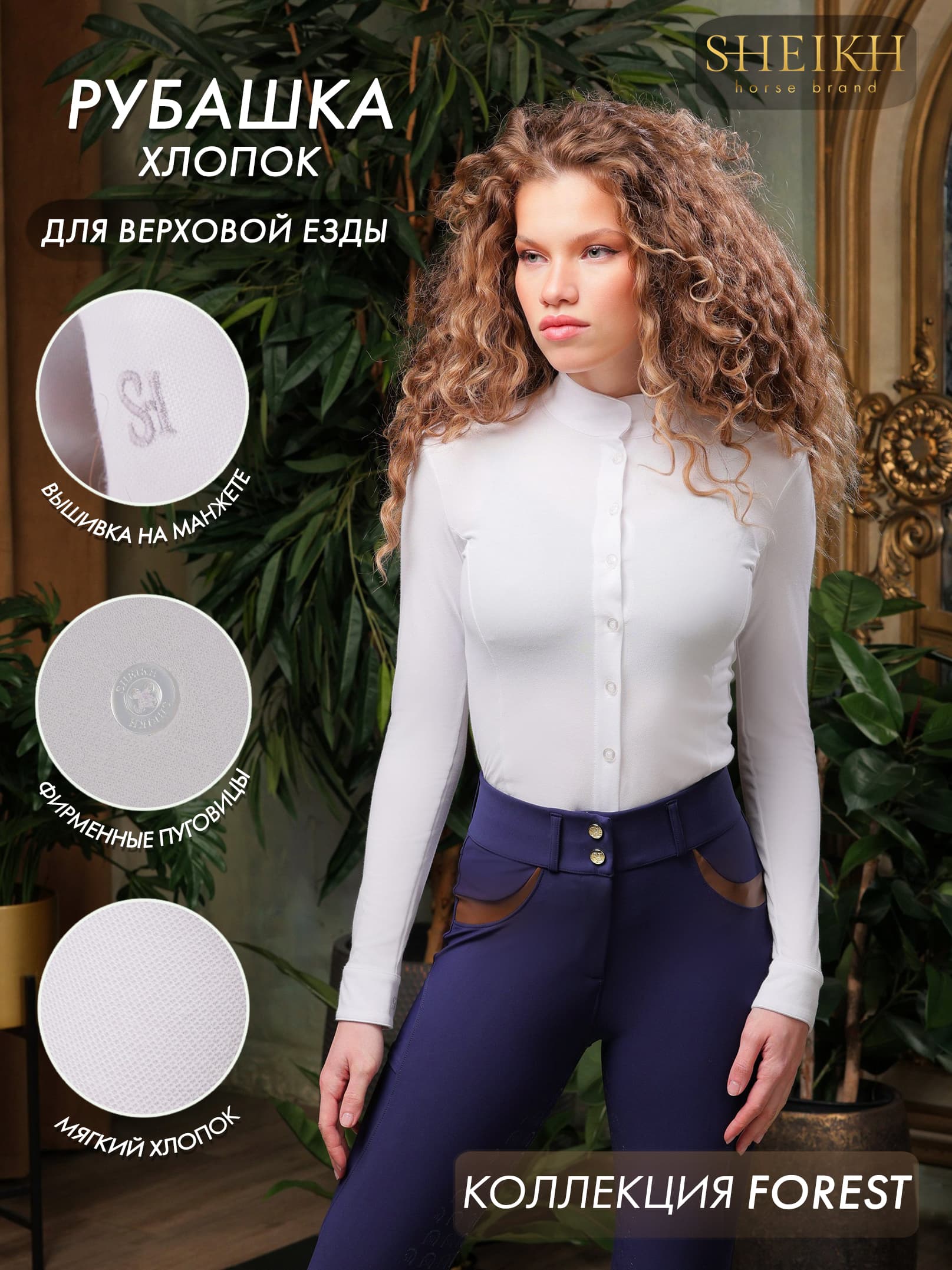 Хлопковая рубашка для верховой езды, конного спорта, коллекция Forest