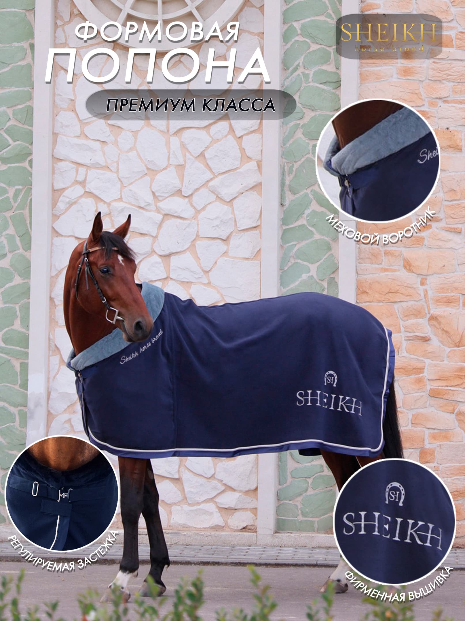 Попона для верховой езды, конного спорта Флисовая попона для лошади от бренда SHEIKH - это не просто попона, это произведение искусства. Мягкая попона окутает Вашу лошадь теплом и заботой. Меховой воротник подчеркнет статность вашего любимца и с невероятной нежностью отнесется к его груди и шее. Попона окантована атласной тканью и украшена витыми шнурами. Детали: Попона изготовлена из плоногофлиса антипилинг. Состав: 100% полиэстер,300 гр м2 Попона украшена фирменными вышивками. Спереди Т-образная пряжка с регулировкой, подхвостник на карбине. Уход: Машинная стирка на деликатном режиме, при температуре не более 30С Сушка на открытом пространстве