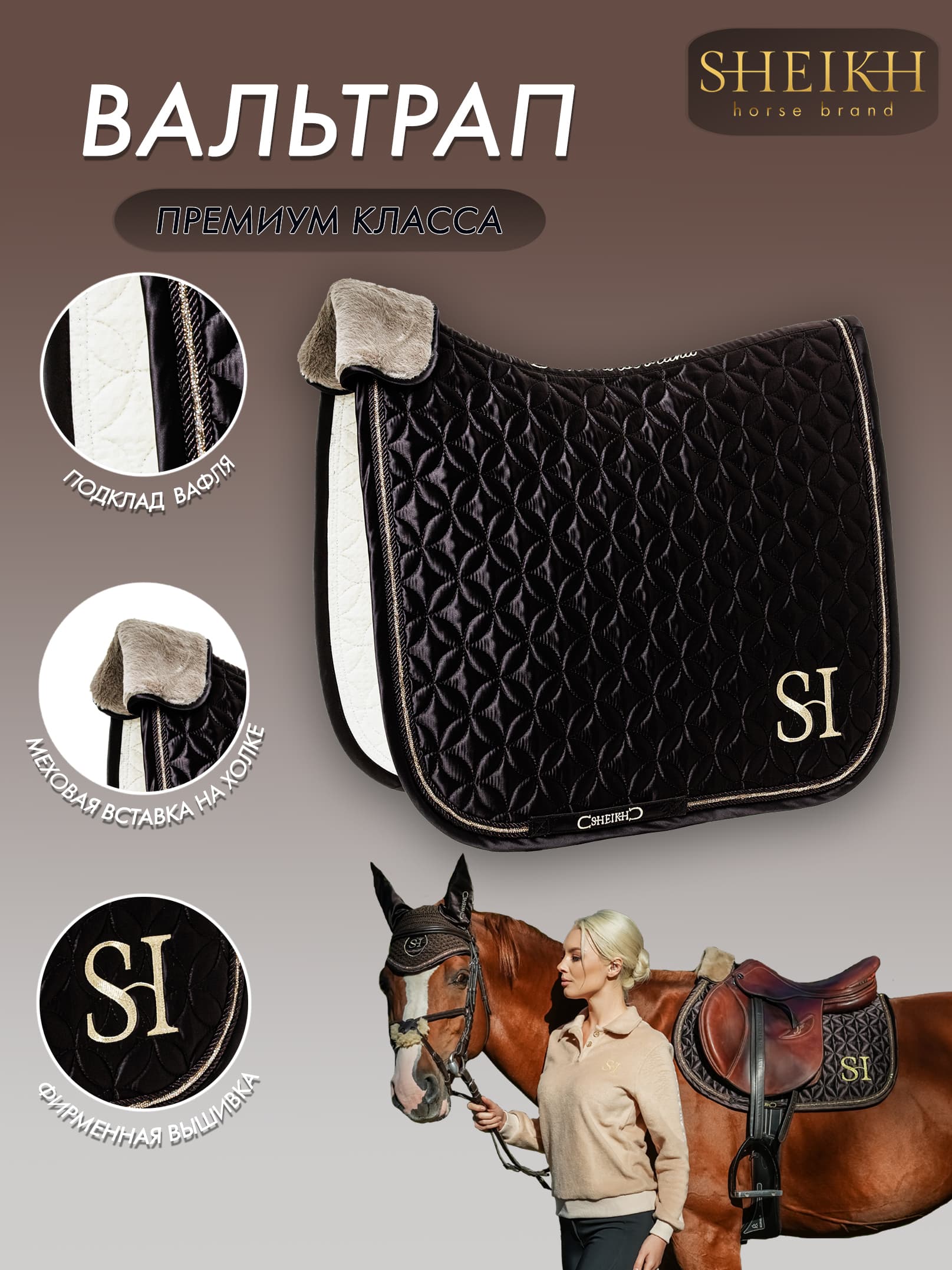 С вальтрапом от бренда SHEIKH вы создадите идеальный образ изящества, утонченности и истинной любви к грациозным животным. Вальтрап станет невероятно приятной и удобной покупкой, а так же идеальным премиальным подарком.
